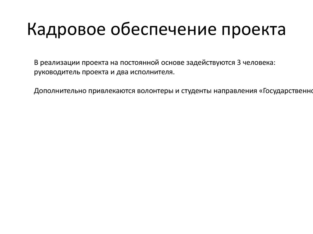 Кадровое обеспечение проектаВ реализации проекта на постоянной основе задействуются 3 человека:
