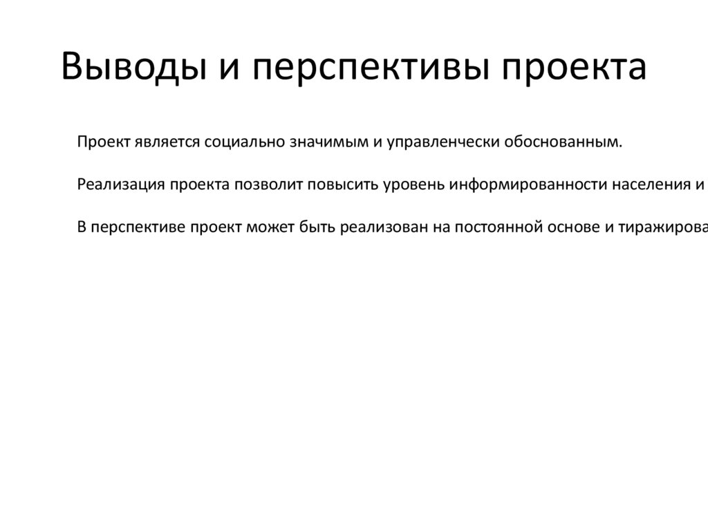 Выводы и перспективы проектаПроект является социально значимым и управленчески обоснованным.