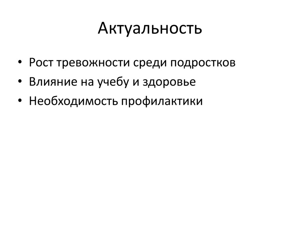 Актуальность• Рост тревожности среди подростков