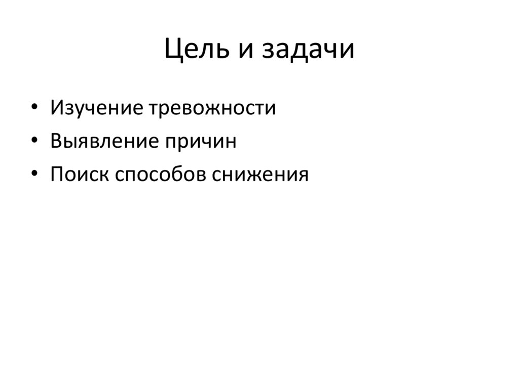Цель и задачи• Изучение тревожности