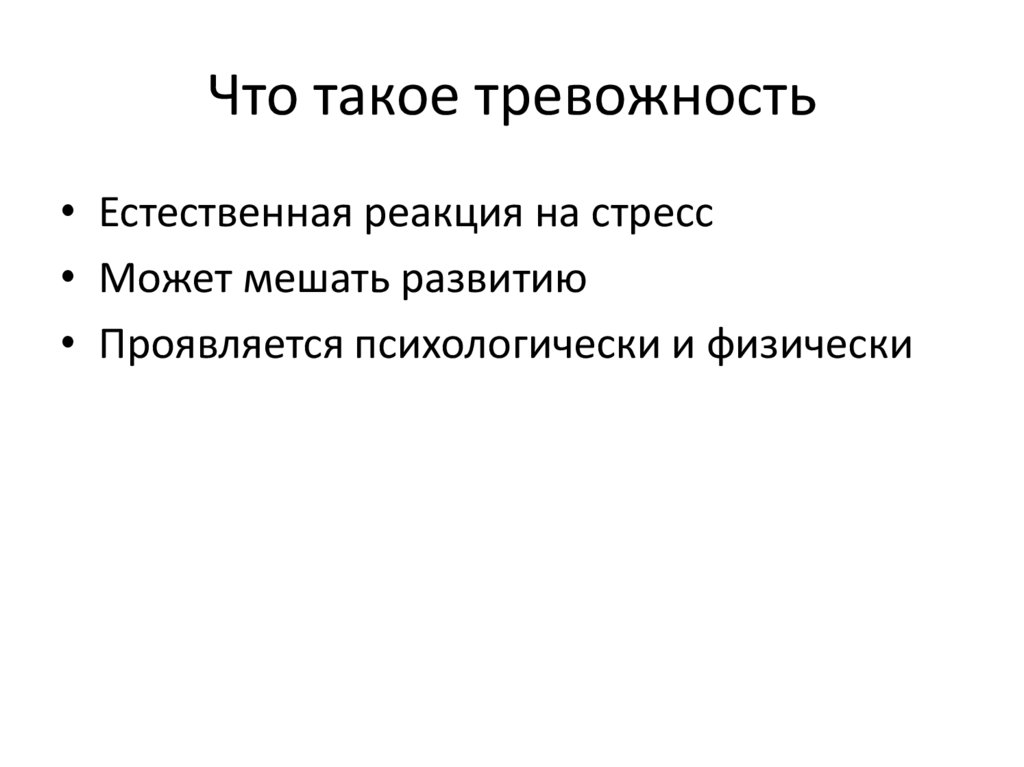 Что такое тревожность• Естественная реакция на стресс