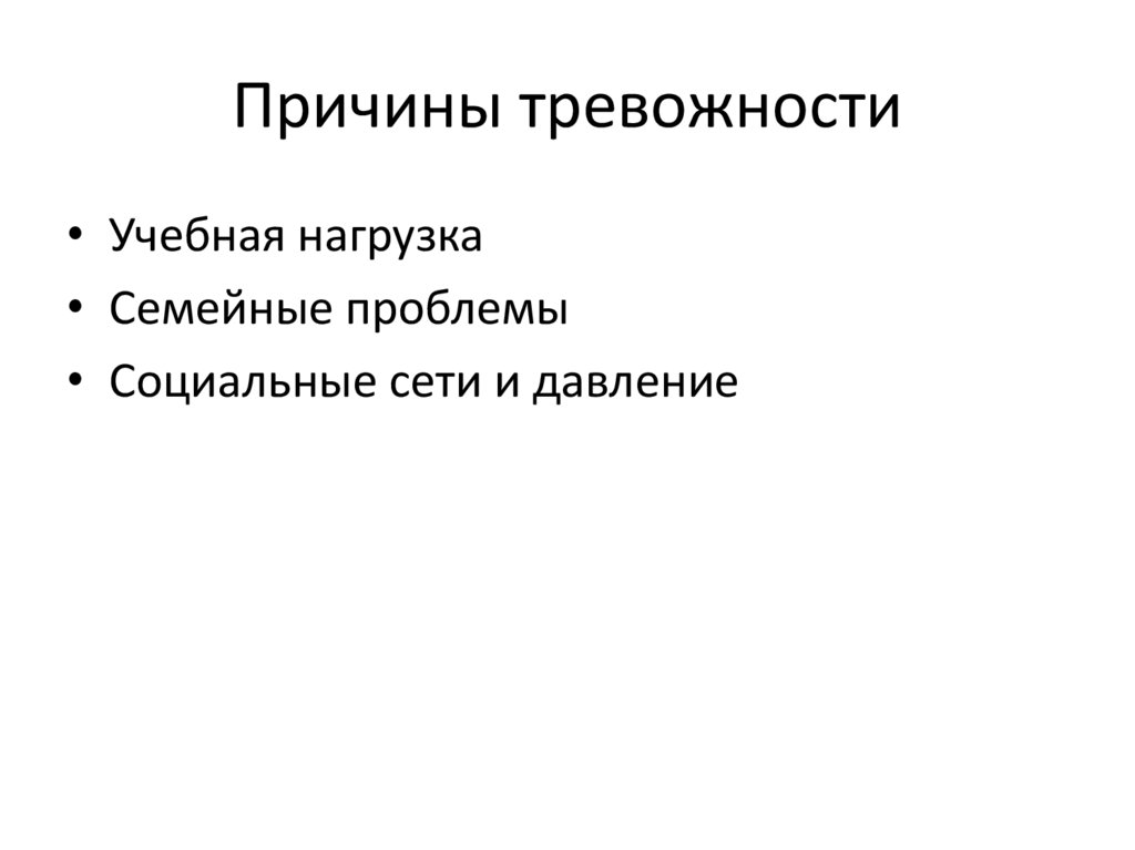 Причины тревожности• Учебная нагрузка