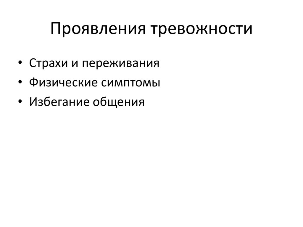 Проявления тревожности• Страхи и переживания