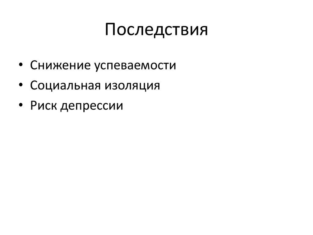 Последствия• Снижение успеваемости