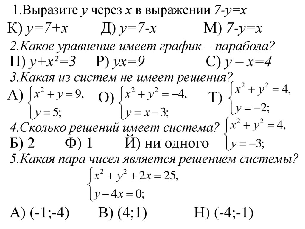 1.Выразите у через х в выражении 7-у=хК) у=7+х