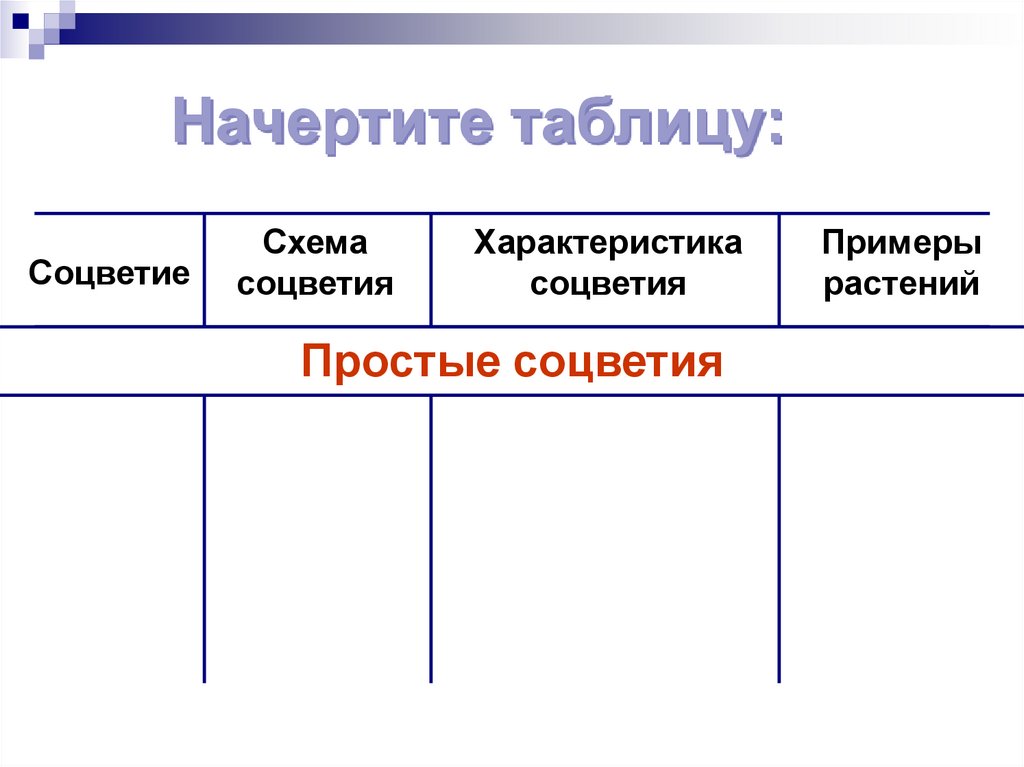 Начертите таблицу:Соцветие