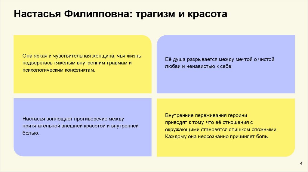 Настасья Филипповна: трагизм и красотаОна яркая и чувствительная женщина, чья жизнь