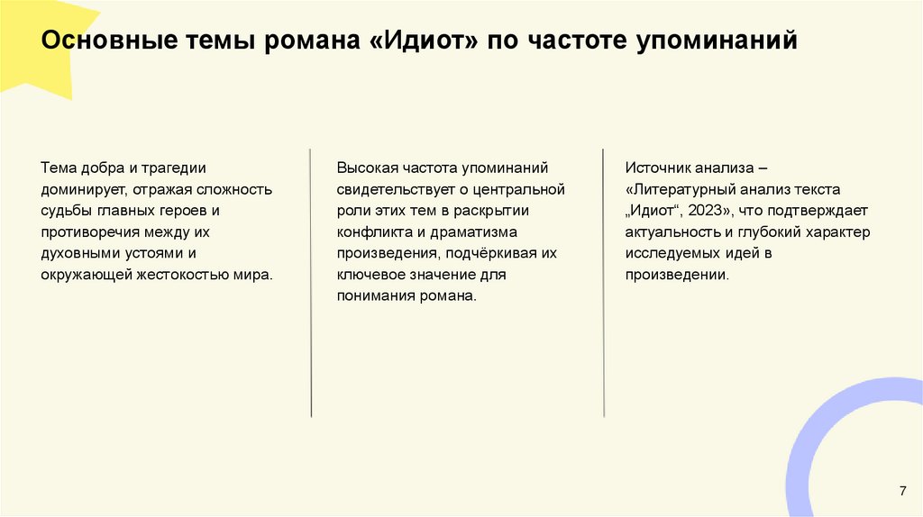 Основные темы романа «Идиот» по частоте упоминанийТема добра и трагедии