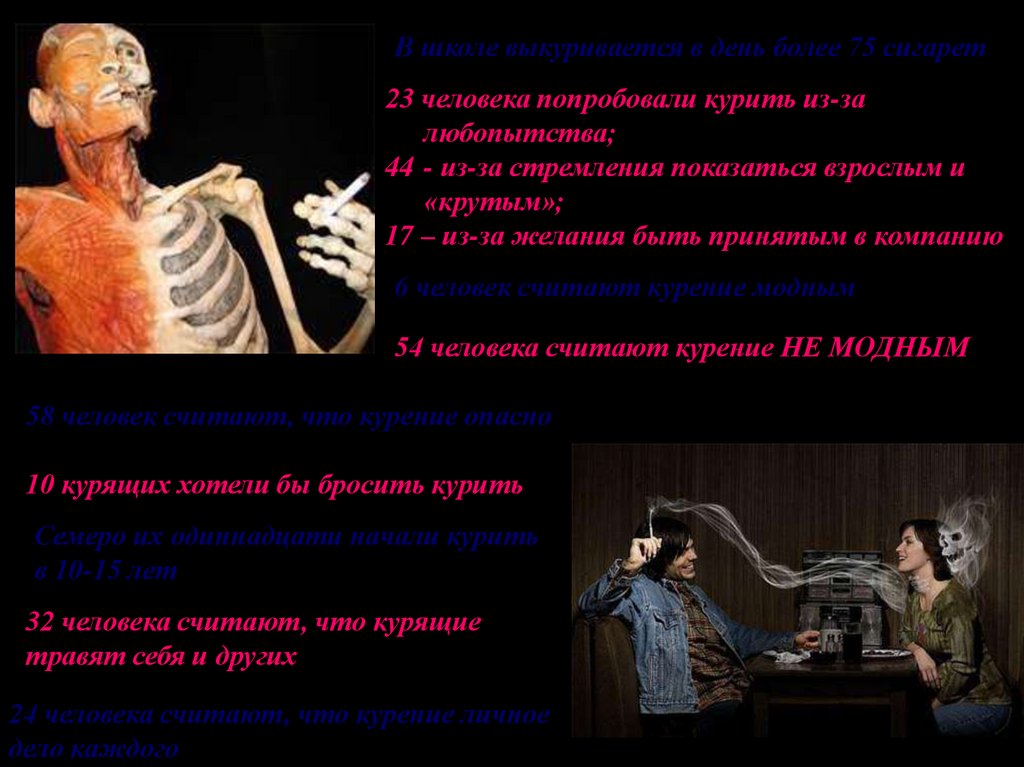 В школе выкуривается в день более 75 сигарет23 человека попробовали курить из-за