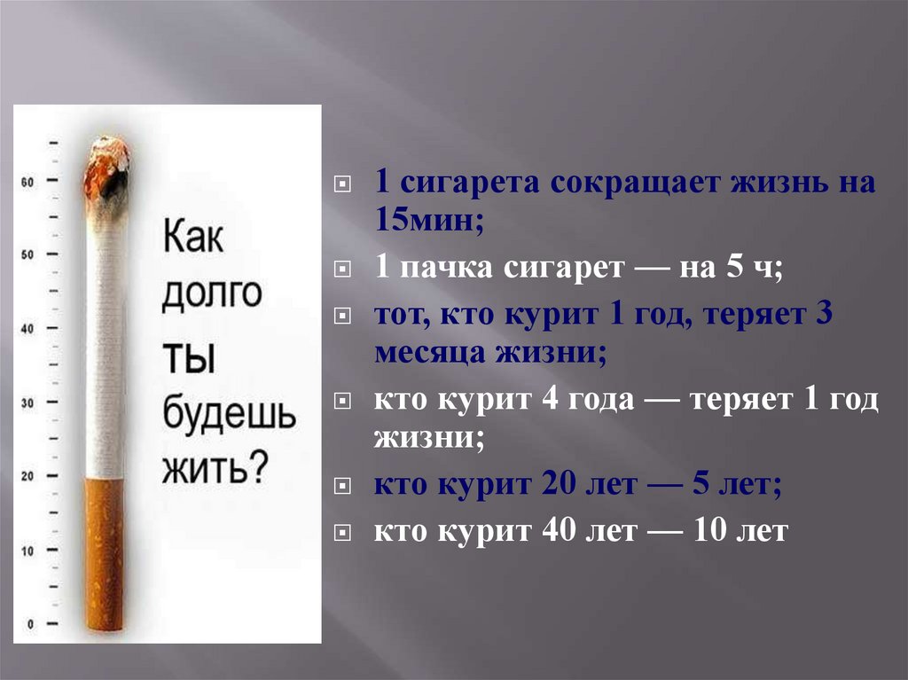 1 сигарета сокращает жизнь на15мин;