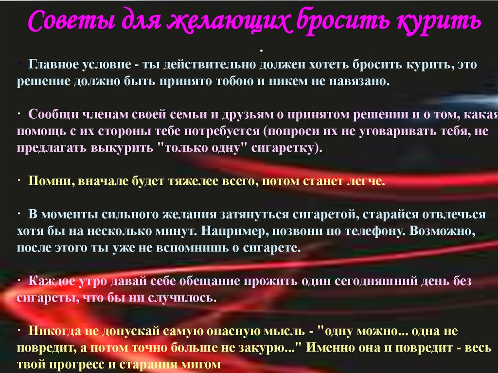 · Главное условие - ты действительно должен хотеть бросить курить, это