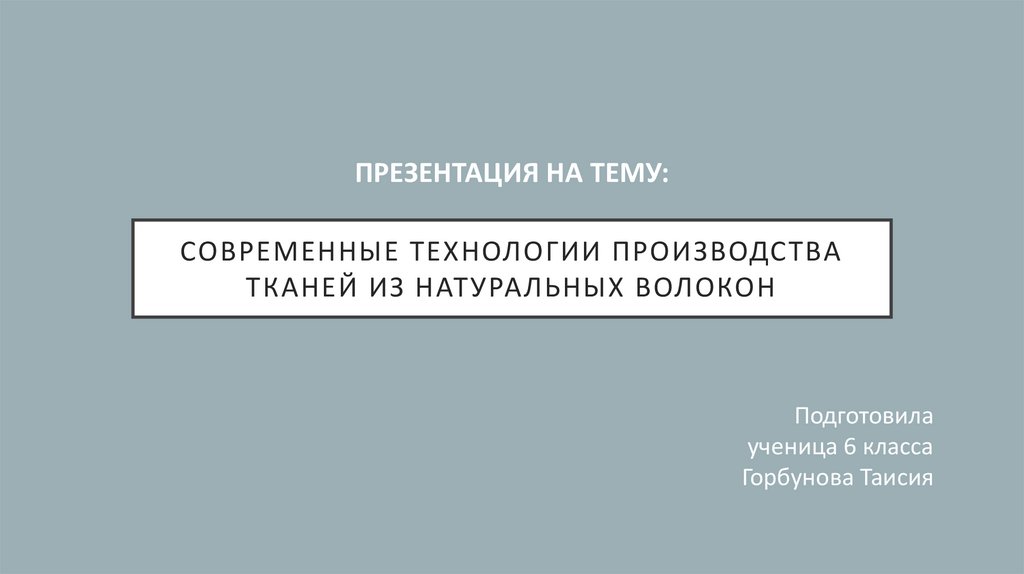 1. современные технологии производства тканей из натуральных волокон