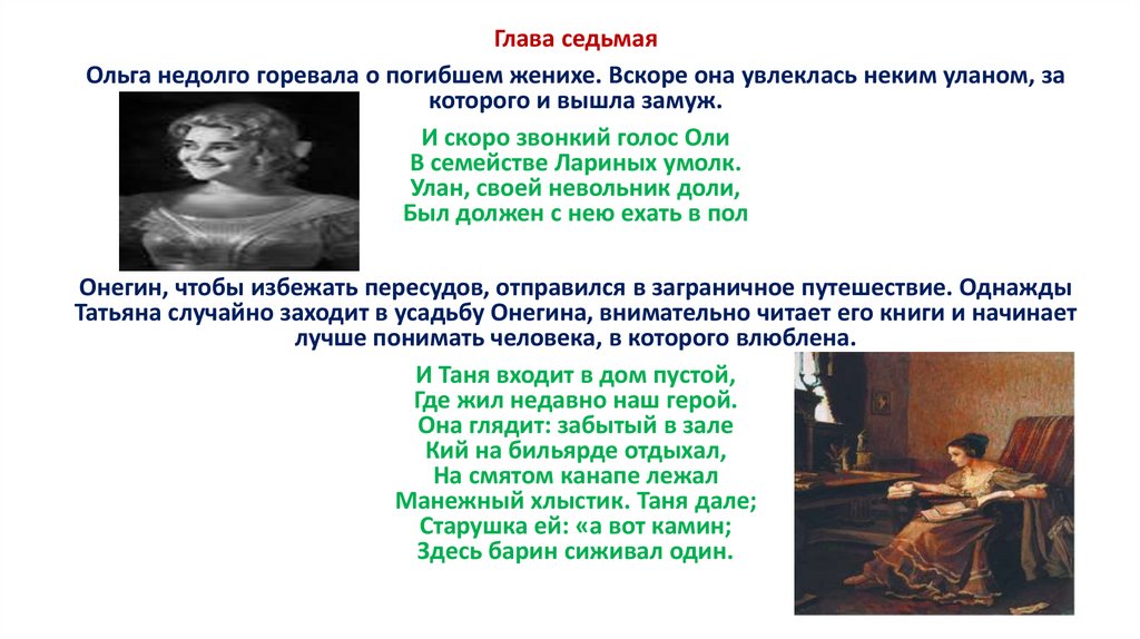 трагической гибели Ленского и отъезда Онегина Татьяна