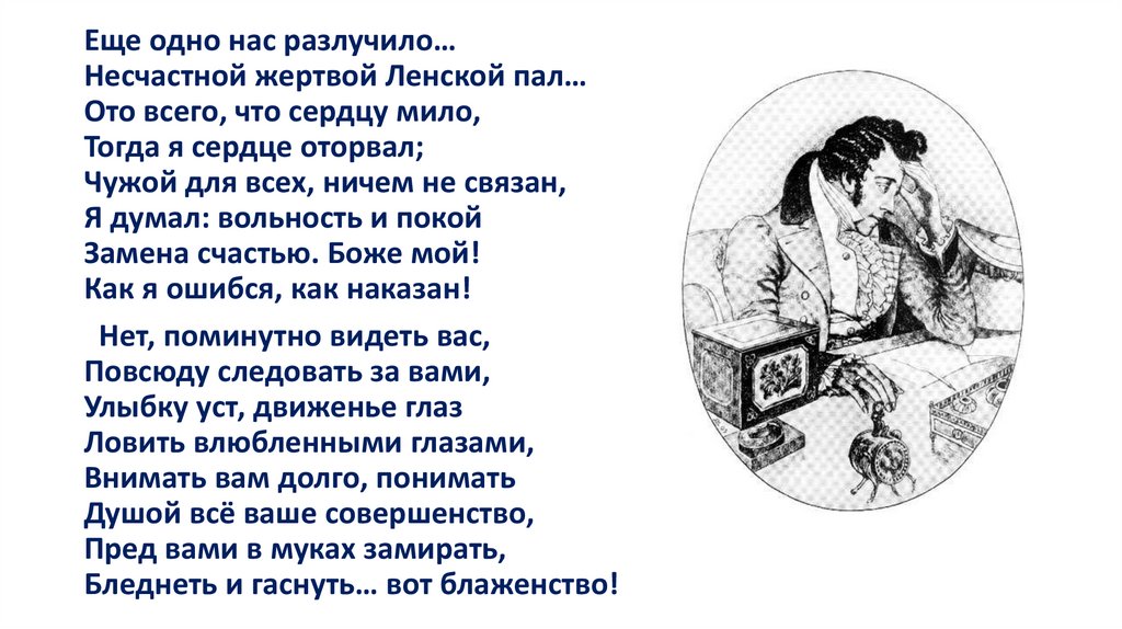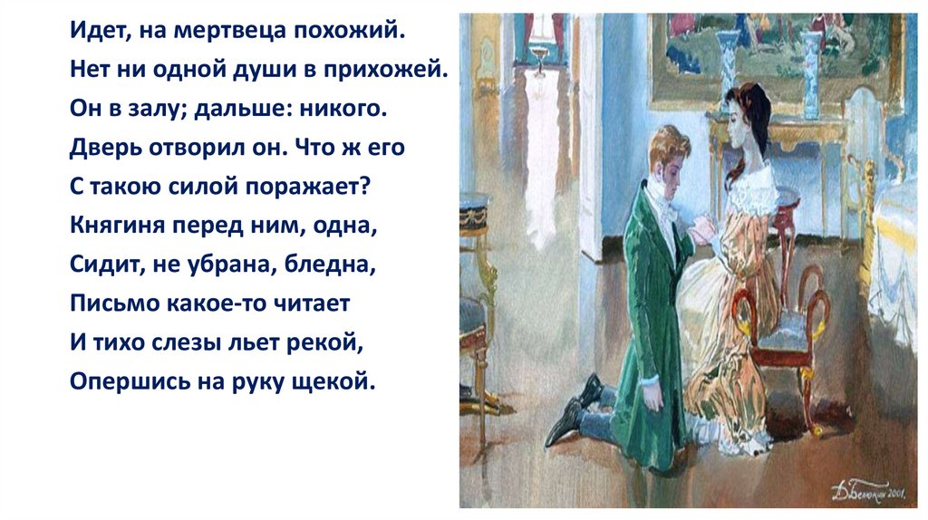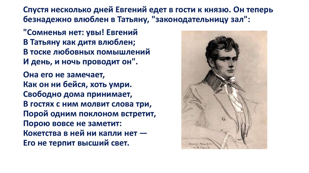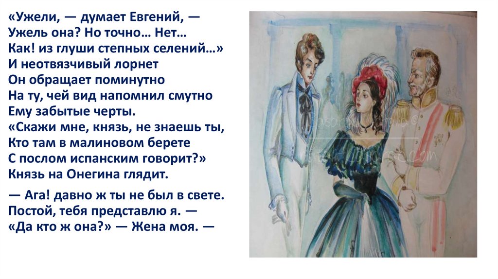 Она ушла. Стоит Евгений,Как будто громом поражен...