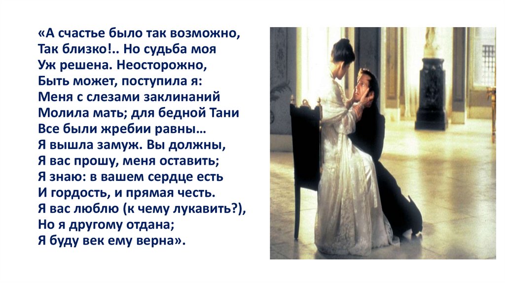 «А счастье было так возможно,Так близко!.. Но судьба моя