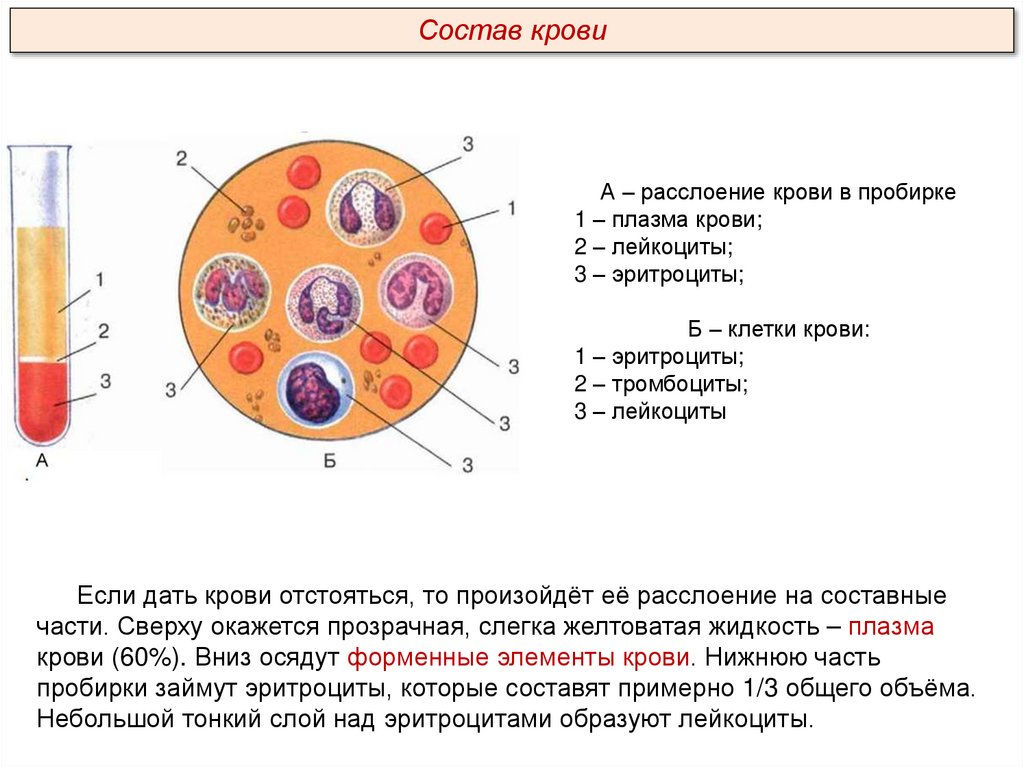 Состав кровиА – расслоение крови в пробирке