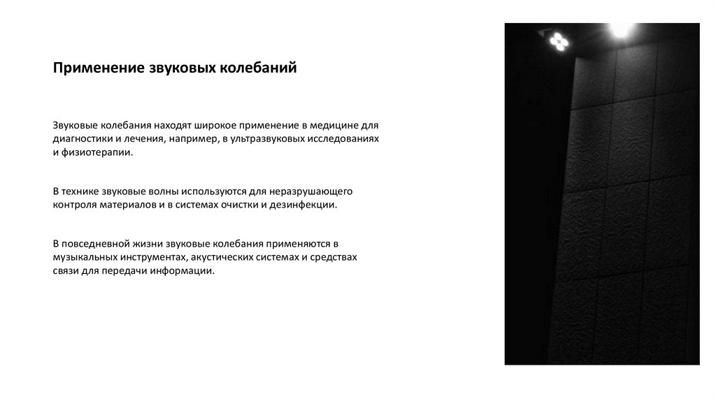 Применение звуковых колебанийЗвуковые колебания находят широкое применение в медицине для