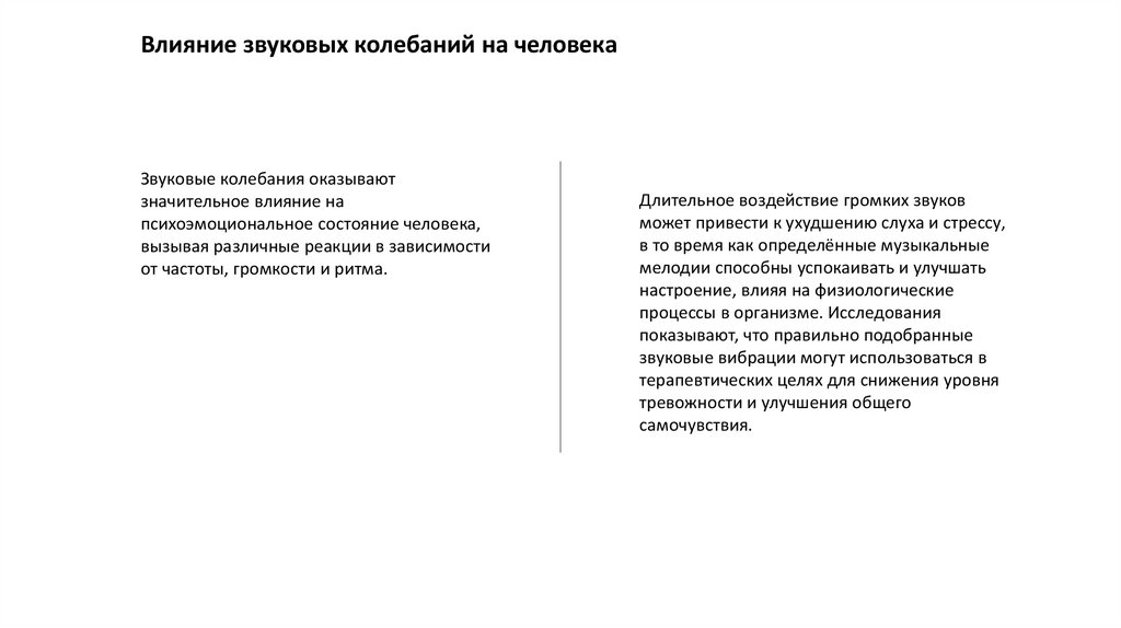 Влияние звуковых колебаний на человекаЗвуковые колебания оказывают