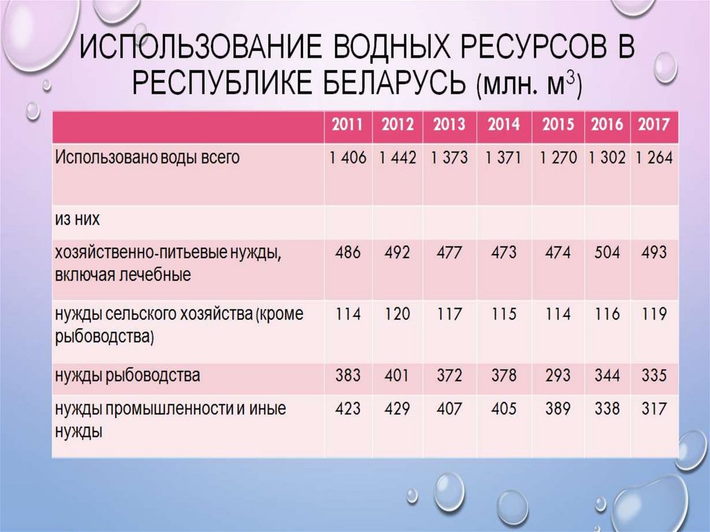 3. 1. Основные направления использования водных ресурсов в мире и в Республике Беларусь.