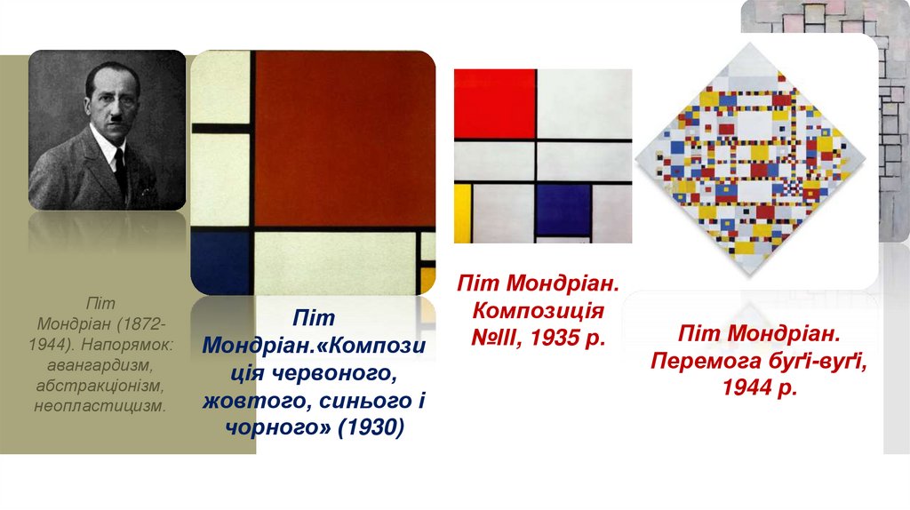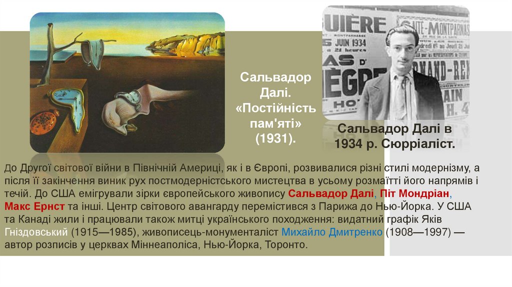 течій. До США емігрували зірки європейського живопису Сальвадор Далі, Піт Мондріан,