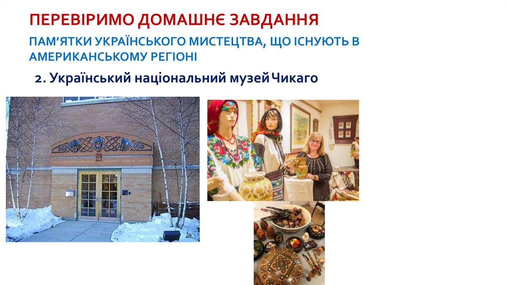 ПЕРЕВІРИМО ДОМАШНЄ ЗАВДАННЯПАМ’ЯТКИ УКРАЇНСЬКОГО МИСТЕЦТВА, ЩО ІСНУЮТЬ В