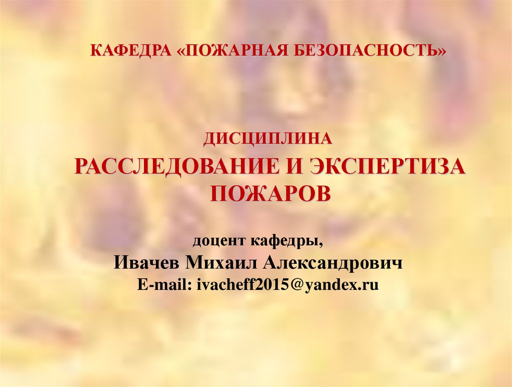 КАФЕДРА «ПОЖАРНАЯ БЕЗОПАСНОСТЬ»ДИСЦИПЛИНА