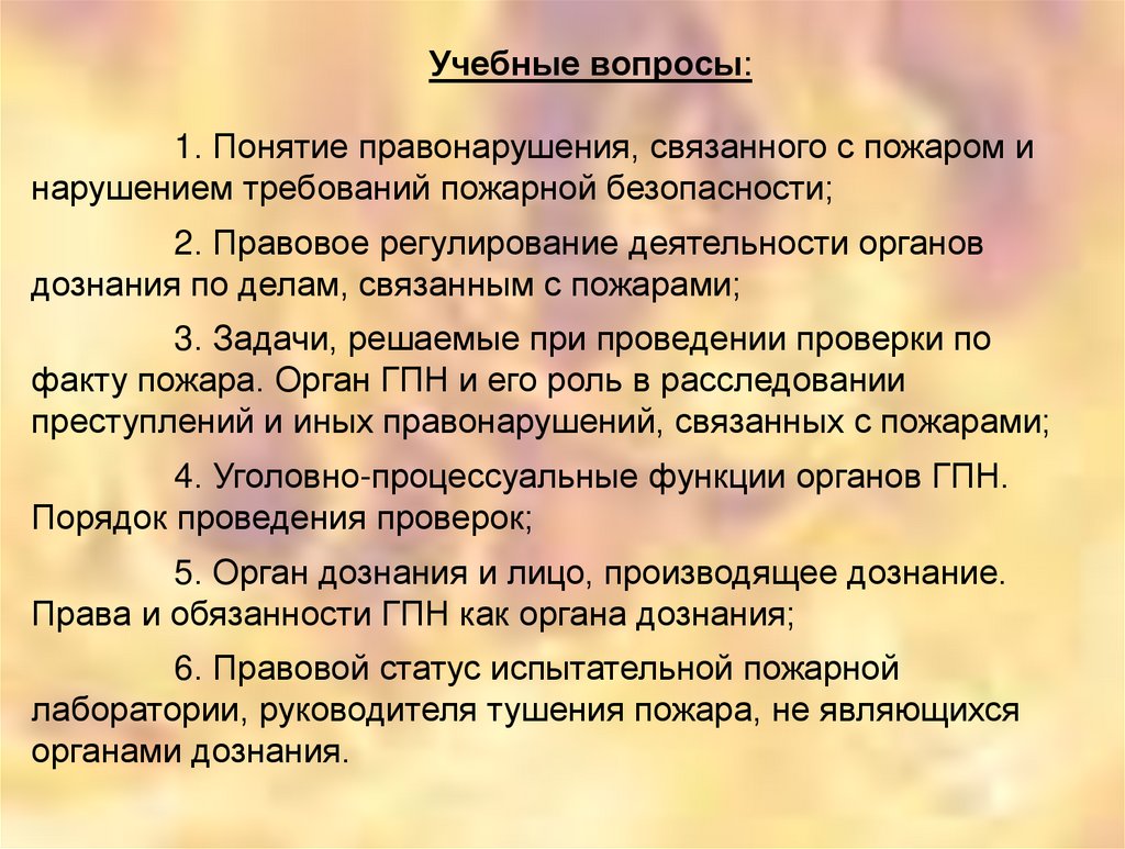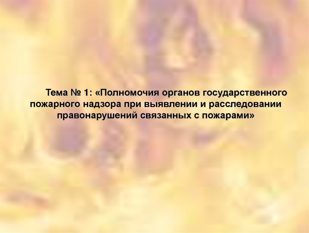 Тема № 1: «Полномочия органов государственногопожарного надзора при выявлении и расследовании