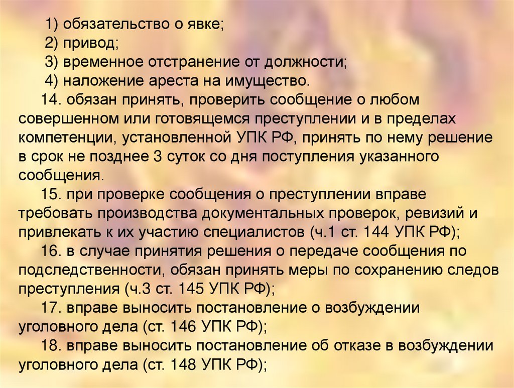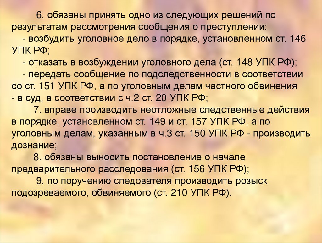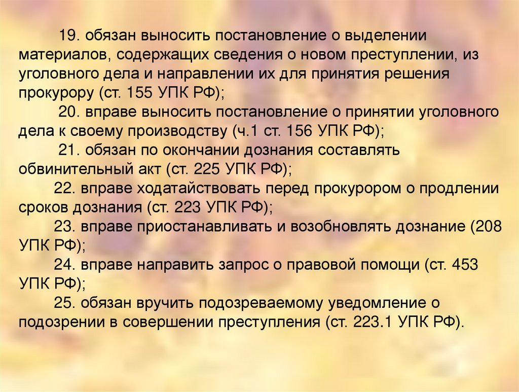 19. обязан выносить постановление о выделенииматериалов, содержащих сведения о новом преступлении, из