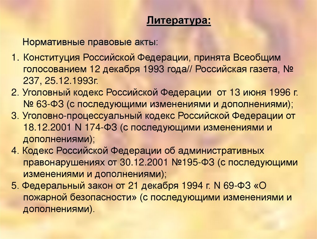 5. Федеральный закон от 21 декабря 1994 г. N 69-ФЗ «О