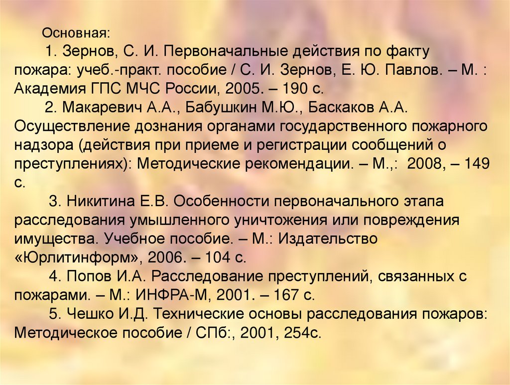 Основная:1. Зернов, С. И. Первоначальные действия по факту