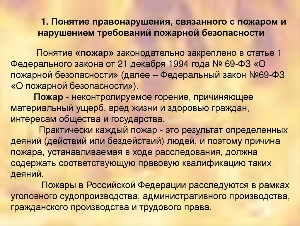1. Понятие правонарушения, связанного с пожаром инарушением требований пожарной безопасности