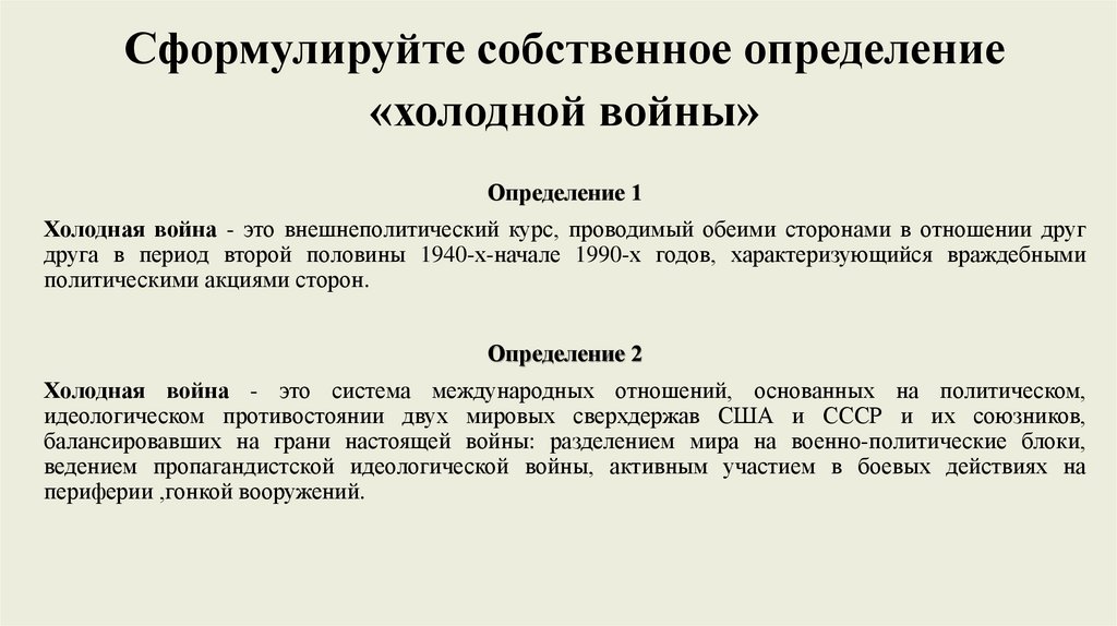 1. Понятие «Холодная война»2. Причины начала «холодной войны»