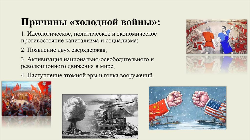Причины «холодной войны»:1. Идеологическое, политическое и экономическое