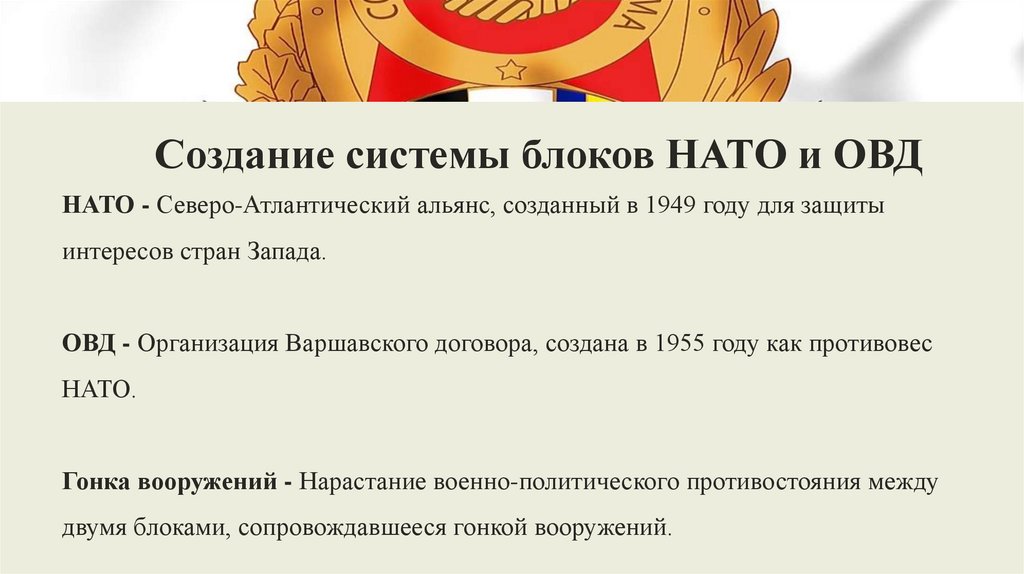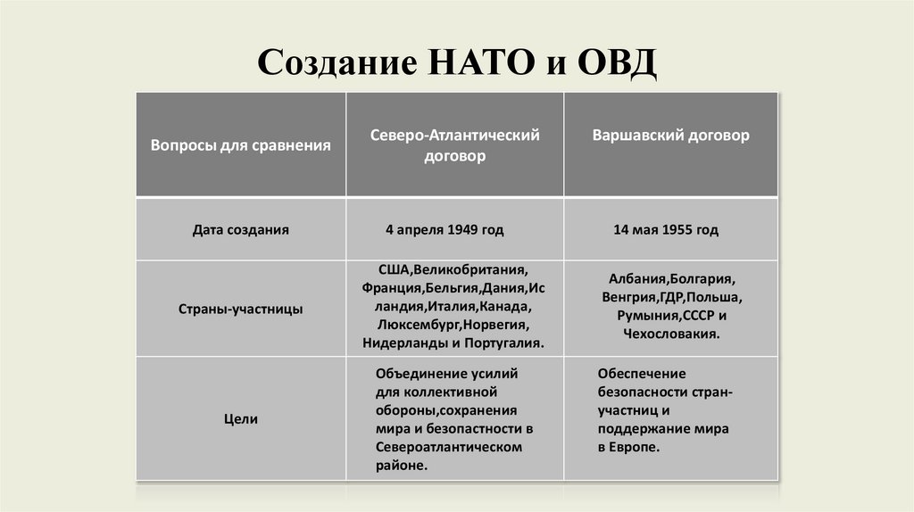 1. От мира к «Холодной войне» Формирование двух военно-политических блоков (НАТО и ОВД)
