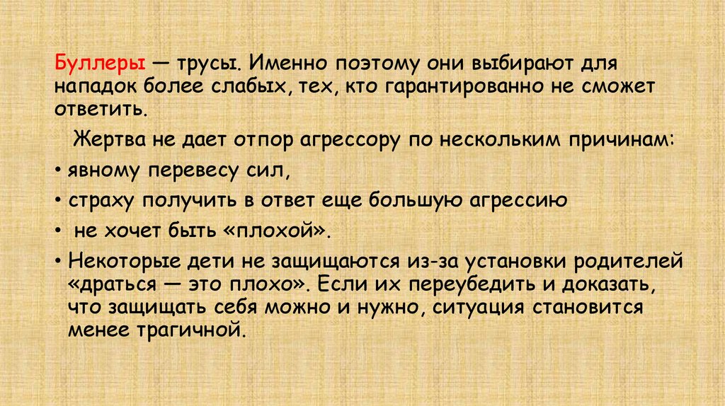 И.Н. Кон: «буллинг – это запугивание, физический илипсихологический террор, направленный на то, чтобы вызвать у