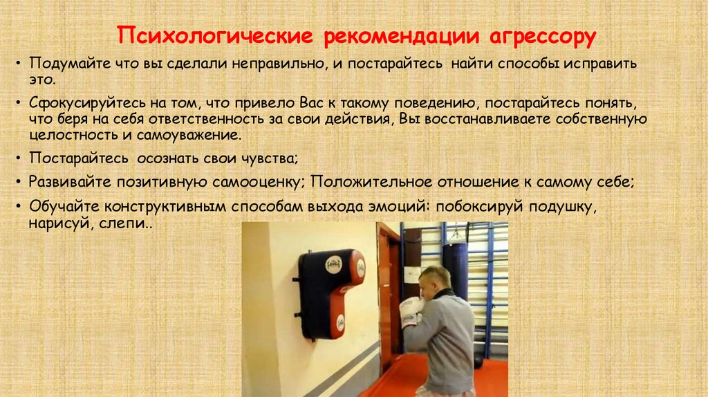 • Обучайте конструктивным способам выхода эмоций: побоксируй подушку,