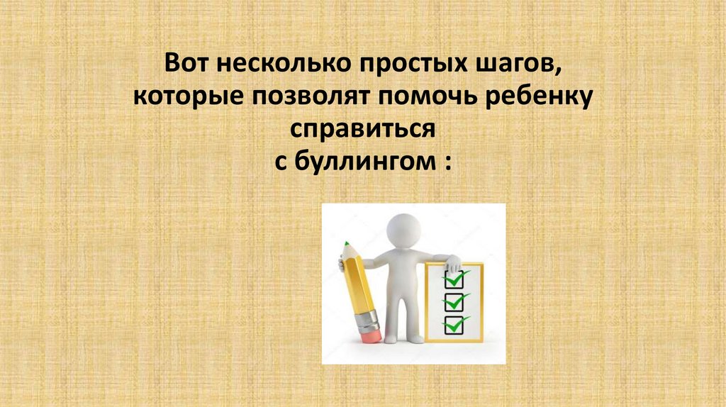 • Буллинг редко возникает в вакууме: скорее всего, он является частью более масштабнойтравли. Установите контакт с педагогами