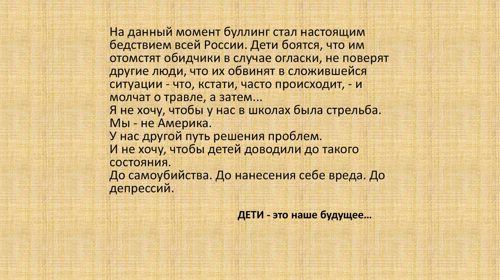 На данный момент буллинг стал настоящимбедствием всей России. Дети боятся, что им