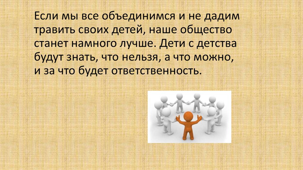 Если мы все объединимся и не дадимтравить своих детей, наше общество