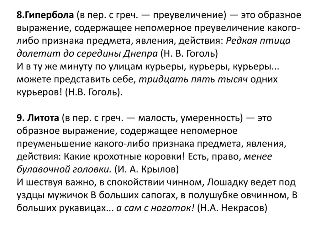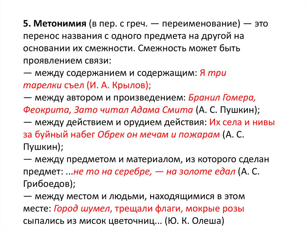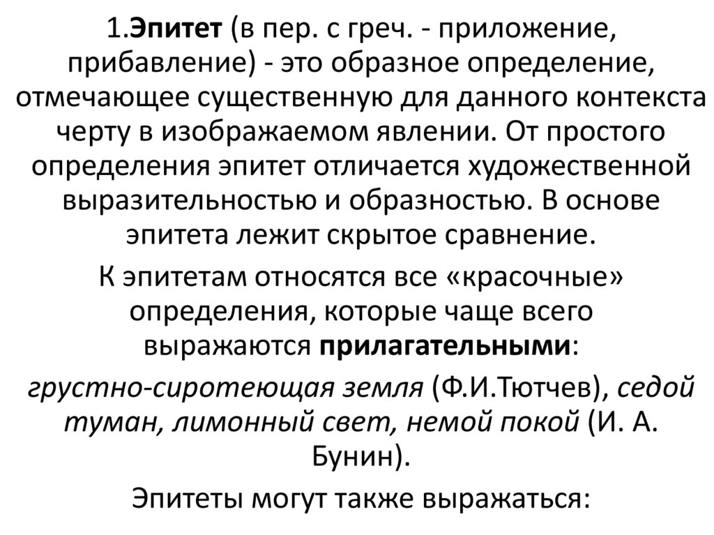 выражений, тропов (эпитетов, метафор, сравнений) в порядке