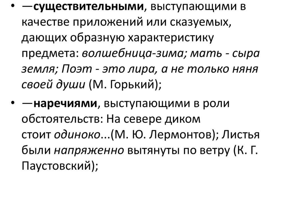 • —существительными, выступающими вкачестве приложений или сказуемых,