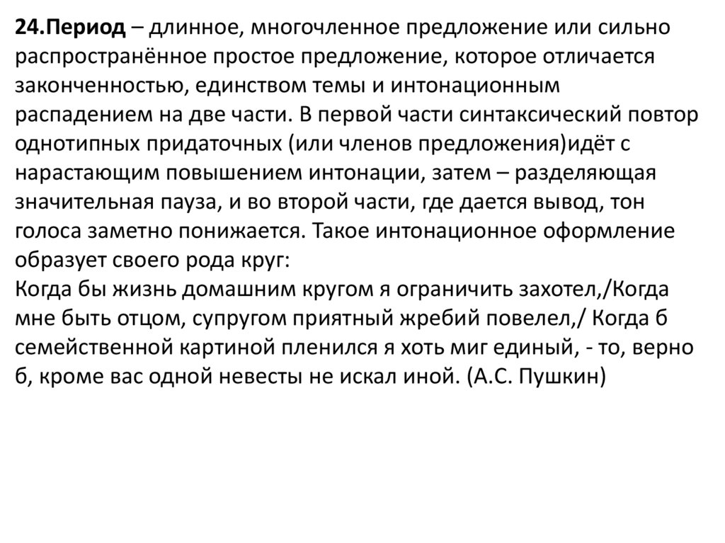 24.Период – длинное, многочленное предложение или сильнораспространённое простое предложение, которое отличается