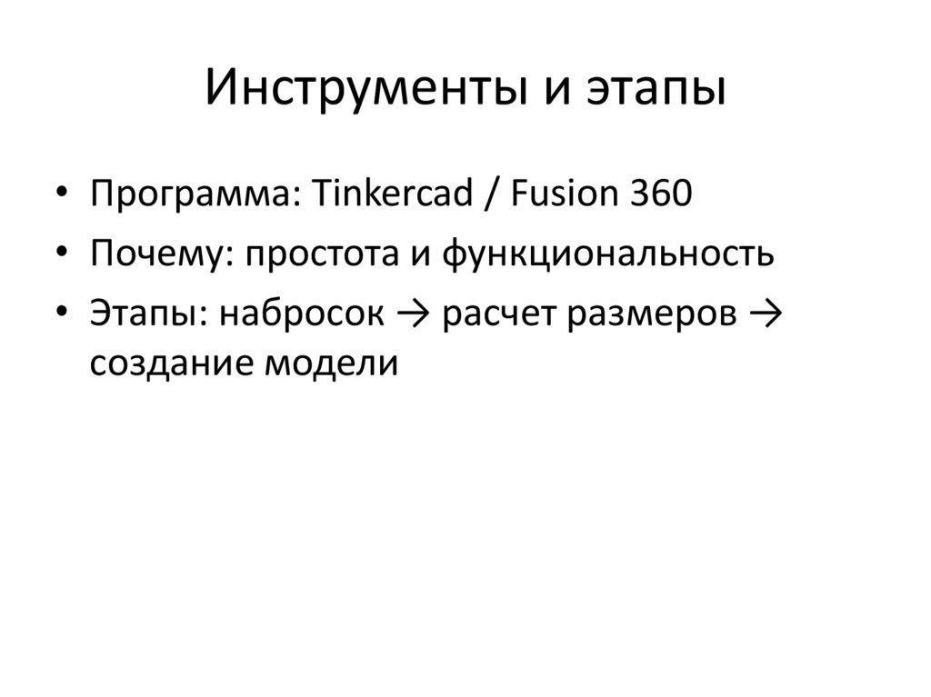 Инструменты и этапы• Программа: Tinkercad / Fusion 360