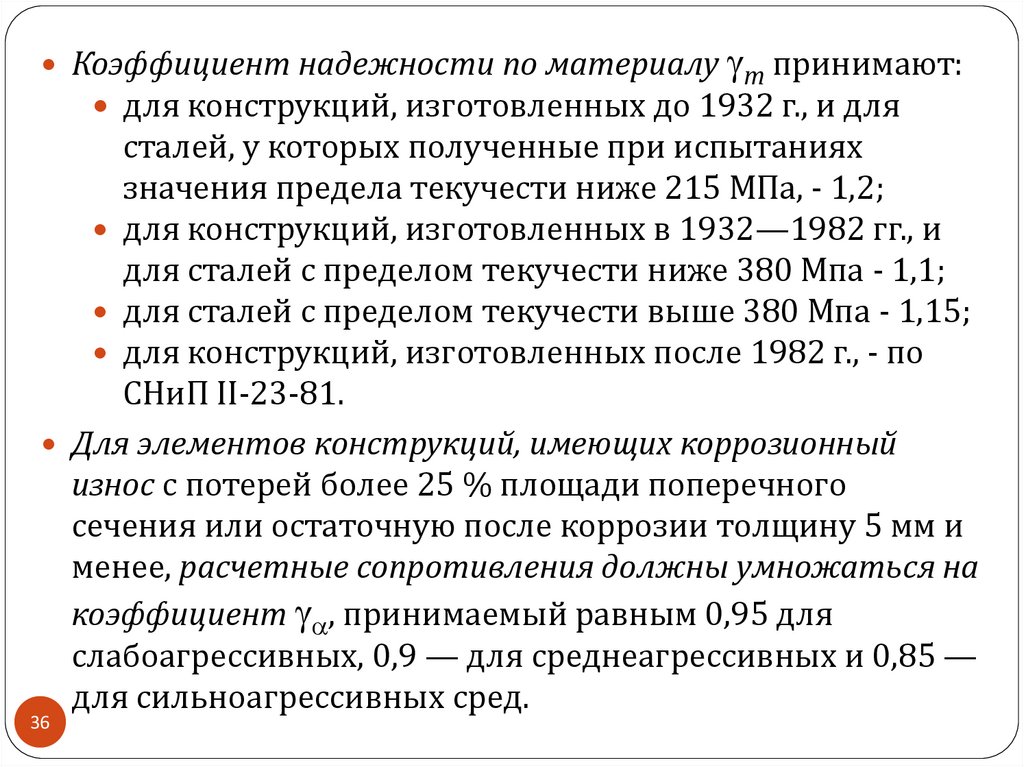 Коэффициент надежности по материалу т принимают:для конструкций, изготовленных до 1932 г., и для