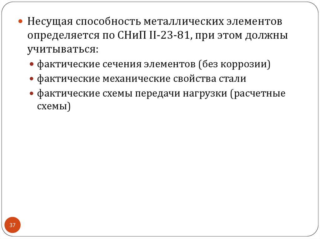 Несущая способность металлических элементовопределяется по СНиП II-23-81, при этом должны