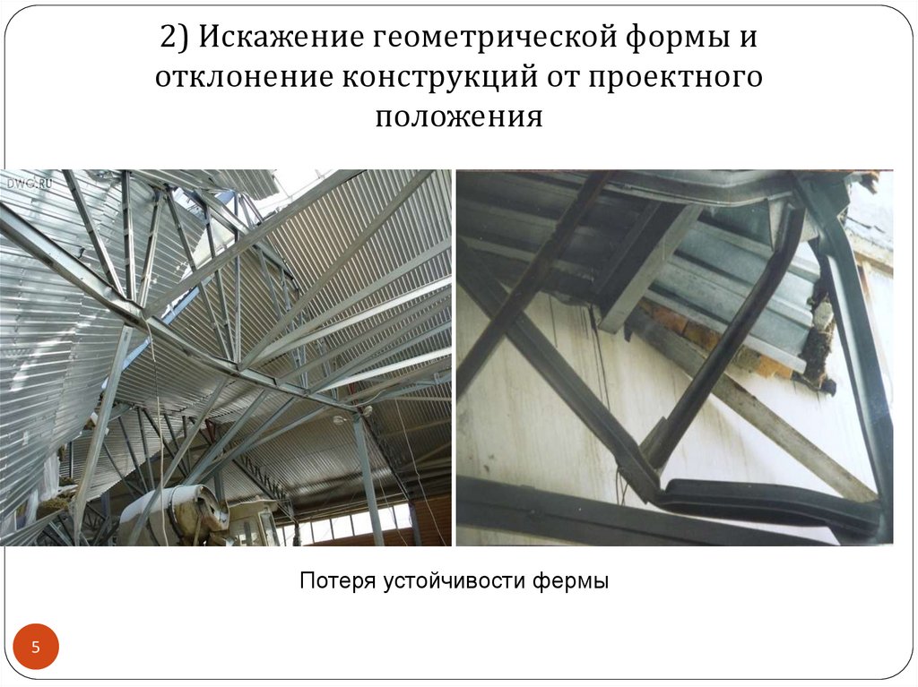 2) Искажение геометрической формы иотклонение конструкций от проектного