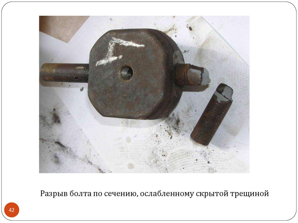 Разрыв болта по сечению, ослабленному скрытой трещиной42