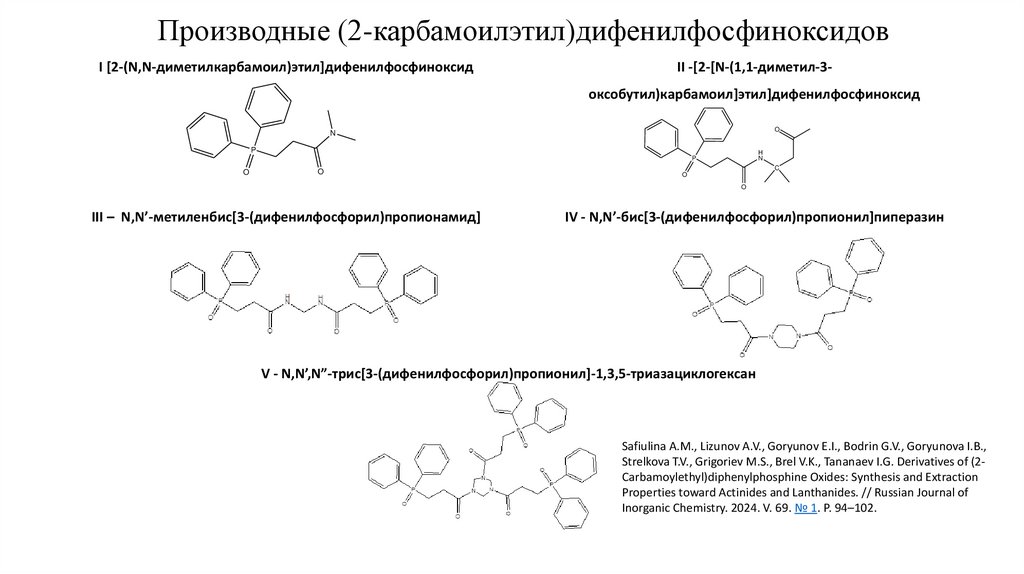 Strelkova T.V., Grigoriev M.S., Brel V.K., Tananaev I.G. Derivatives of (2Carbamoylethyl)diphenylphosphine Oxides: Synthesis and Extraction