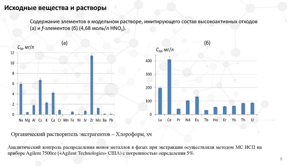 Аналитический контроль распределения ионов металлов в фазах при экстракции осуществляли методом МС ИСП на