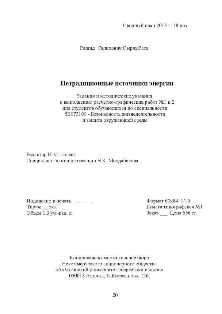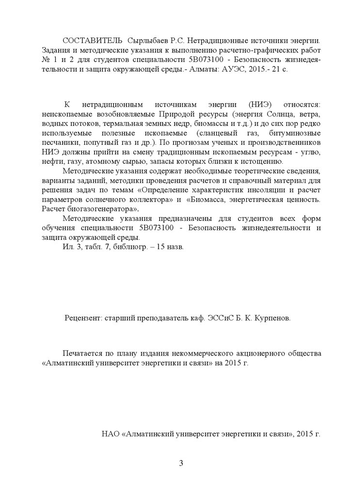 СОСТАВИТЕЛЬ Сырлыбаев Р.С. Нетрадиционные источники энергии.Задания и методические указания к выполнению расчетно-графических работ